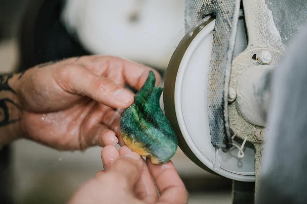 Today, we use diamond-impregnated tools to carve jade. It's far more efficient. Like traditional Māori carving techniques and tools, they are all abrasive, however, ours are synthetic and machinated to run over 2500 times faster than hand carving techniques. We are also able to create abrasives with a much harder surface than naturally occurring stones such as quartz which pre-European Māori used. These synthetic diamond tools make modern carving faster and more precise.