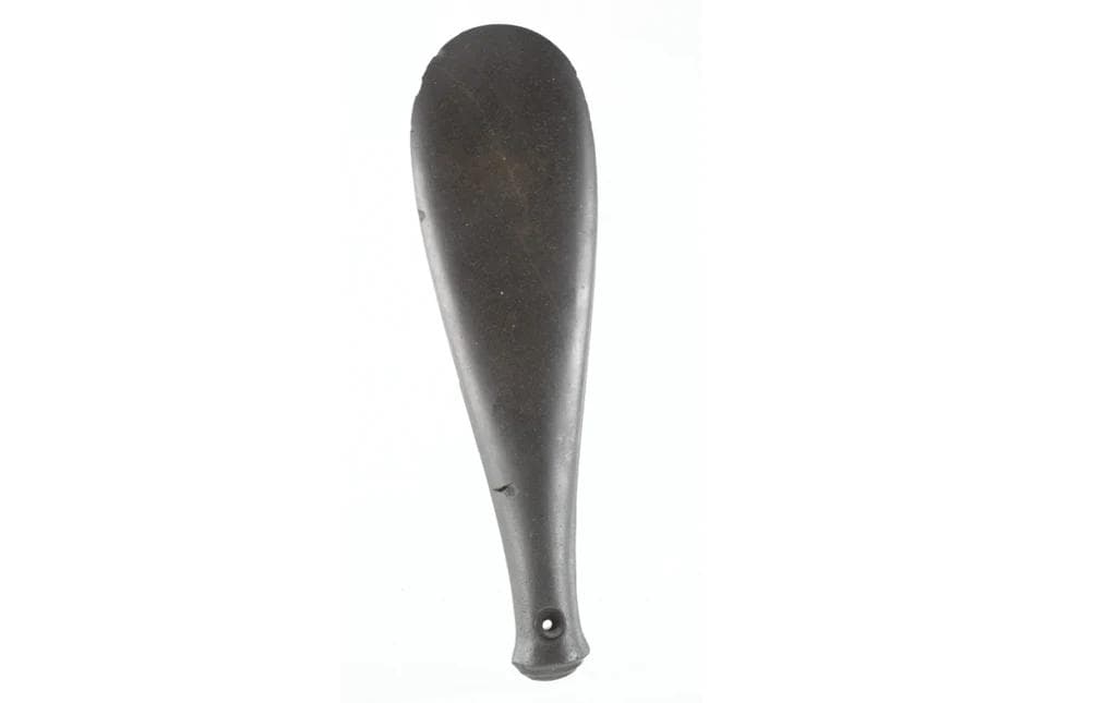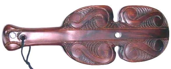 Simple in form and shape, the patu is a short club used as a striking weapon to hit the enemy's upper body, including mortal strikes to the head of the fallen, usually made of wood, whalebone or stone such as basalt.